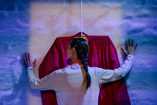 Kırgızistan’dan gelen grubun sergilediği Weightlessness bir başka ilginç oyundu. Mekânın tamamının pamuklarla kaplandığı, zamansız ve mekânsız bir ortam izlenimi veren farklı bir atmosferde geçen oyunda iki kadının bedenlerini keşfetme, anlama ve hissetme çabaları sergileniyor. Oyunun tanıtımından aldığımız bilgiye göre Kırgız sanatında ve toplumunda en çok kaçınılan konulardan biri insan bedeni ve özellikle kadın bedeni adeta bir tabu olarak kabul ediliyor. İki kadın, oyun boyunca erkek egemen dünya içinde var olma mücadelesini, kendi bedenleriyle, karşısındakinin bedeniyle girdiği çatışmaları, çelişkileri etkili bir şekilde sergileyerek anlatmaya çalıştılar.