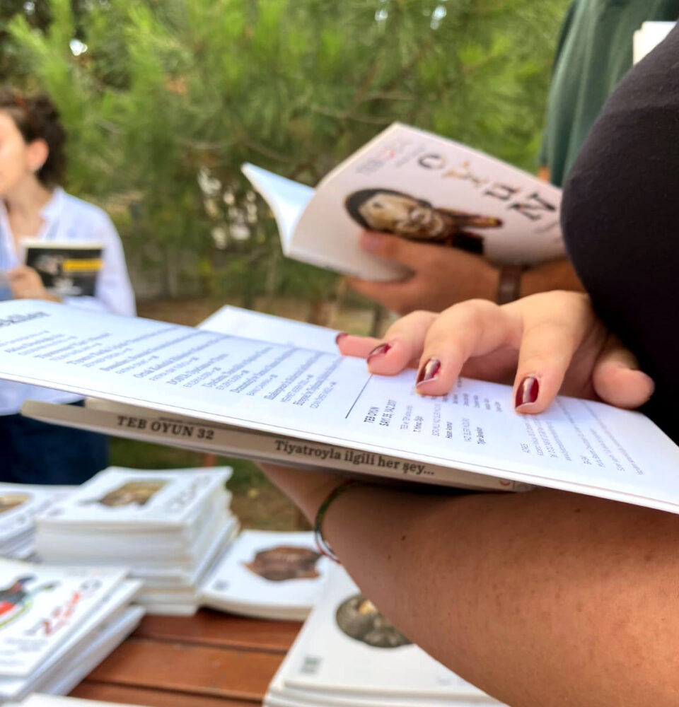 Etkinlik Esmeye Başlayınca Üşüdüm / 02.09.2023 GünlükYüsra Yüce16 Kasım 2023 Etkinlik Başka Türlü Bir Akşamüstünde: “Nasıl?”Baturalp Ali Yavuz16 Kasım 2023 Etkinlik Erika Fischer Lichte: Tiyatro Tarih YazımıErika Fischer-Lichte14 Kasım 2023 Tiyatro Eleştirmenleri Birliği 2022-2023 Sezon DeğerlendirmesiBahar Çuhadar, Gülin Dede and Erdoğan Mitrani10 Kasım 2023 Haber 30. TEB Ödül TöreniYaşam Gülseven10 Kasım 2023 Eleştiri Kırılıp Dökülen Hayaller: Sırça KöşkZehra İpşiroğlu7 Kasım 20233132333435 BİZE YAZIN ADI SOYADI Email Mesaj GÖNDER